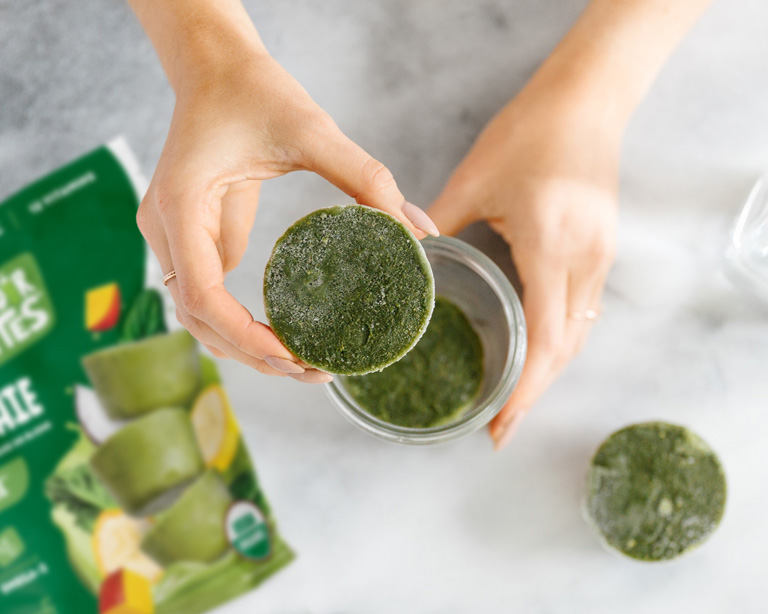 Add puck(s) and water or liquid of choice* to a blender, blend & enjoy!