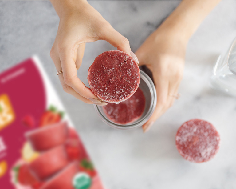 Add puck(s) and water or liquid of choice* to a blender, blend & enjoy!